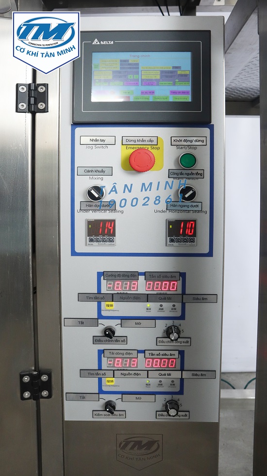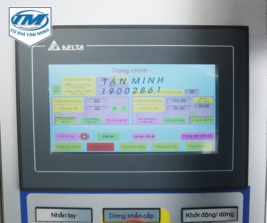 - Bộ điều khiển tiếng Việt dễ dàng sử dụng duy nhất chỉ có tại máy đóng gói túi lọc tam giác Tân Minh