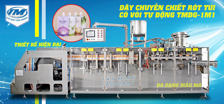 Dây chuyền chiết rót túi có vòi tự động TMĐG-1M1 là thiết bị được Công Ty Cơ Khí Tân Minh sản xuất và phân phối trên toàn quốc. Máy được ứng dụng trong lĩnh vực Máy Đóng Gói. Các sản phẩm của chúng tôi đều được kiểm tra kỹ lưỡng và vận hành thực tế để luôn đảm bảo chất lượng tốt nhất trước khi bàn giao thiết bị cho khách hàng