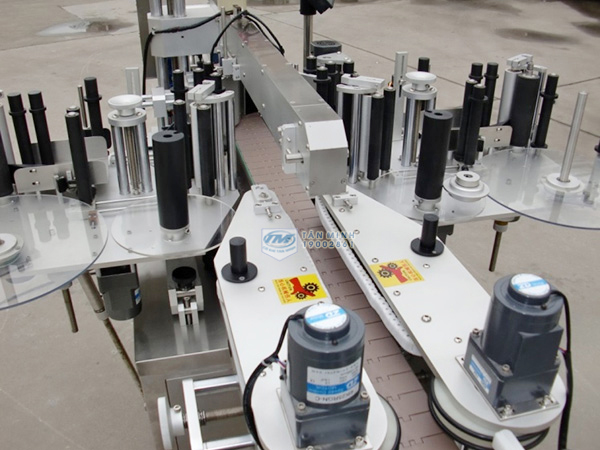 Sau khi các chai được đưa vào đầu băng tải của máy dán nhãn, sẽ được băng tải di chuyển với tốc độ không đổi. Thiết bị cố định cơ học tách các chai được dán theo một khoảng cách cố định và đẩy các chai dọc theo hướng của băng tải. Sau khi chai đi qua bộ phận mắt cảm biến đầu vào thì hệ thống đầu dán nhãn sẽ phóng nhãn ra dán vào bề mặt của chai theo đúng vị trí đã cài đặt. Cuối cùng chai sẽ được đi qua bộ phận miết tem nhãn nhằm đảm bảo nhãn dán được chắc chắn, không bị nhăn và không có bóng khí.