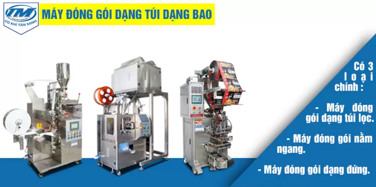 Cơ Khí Tân Minh đem đến khách hàng nhiều sự lựa chọn cho dòng máy đóng gói dạng túi, dạng bao hiện đang rất được ưa chuộng bởi người tiêu dùng, đảm bảo chất lượng và đáp ứng tốt mọi yêu cầu từ khách hàng. Bao gồm:
