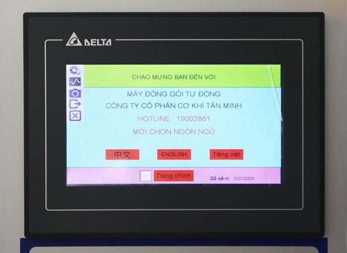 - Bộ điều khiển tiếng Việt dễ dàng sử dụng duy nhất chỉ có tại máy đóng gói túi lọc tam giác Tân Minh