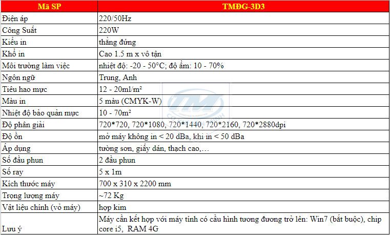 Máy in tranh tường 3D 5 màu mực có đèn UV TMĐG-3D3 là sản phẩm mang công nghệ in độc đáo, được ứng dụng nhiều trong trang trí nhà, văn phòng, các công trình xây dựng.