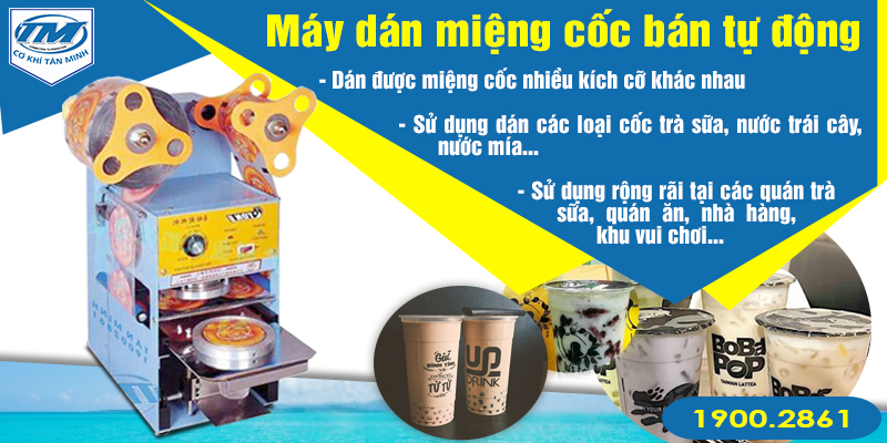 – Máy dán miệng cốc bán tự động được sử dụng rộng rãi tại các quán trà sữa, quán cà phê cũng như các quán ăn nhà hàng, quán bánh tráng trộn nhỏ hộ gia đình và những khu vui chơi giải trí, trung tâm thương mại dịch vụ…vv